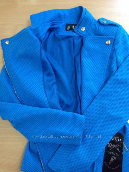 Нарядная женская ветровка-пиджак, красивого синего цвета, ткань однотонная, рельефная, не мнется.Отличный вариант на весну!