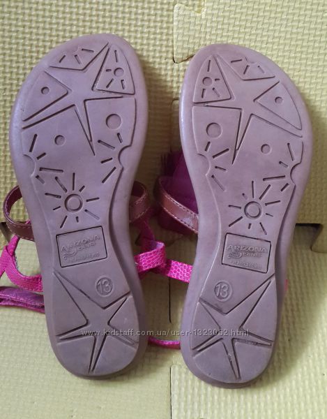 Босоніжки Arizona вказано розмір 13. Устілка 19,2 см. Підійдуть на ножку 18,5-19 см. Защіпаються на липучку на п"ятці. Підійдуть на ножку з середнім або високим підйомом. Легкі і зручні.перешлю