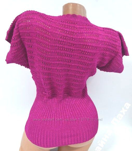 Продам нарядную кофту, украшенная люриксовой нитью.Размер 42- 44. Цвет розовый. Длина изделия 57 см, Полуобхват груди 43-47 см, состав ткани 10% спандекс, 15% полиестр,75% rayon (искуственный шелк) .