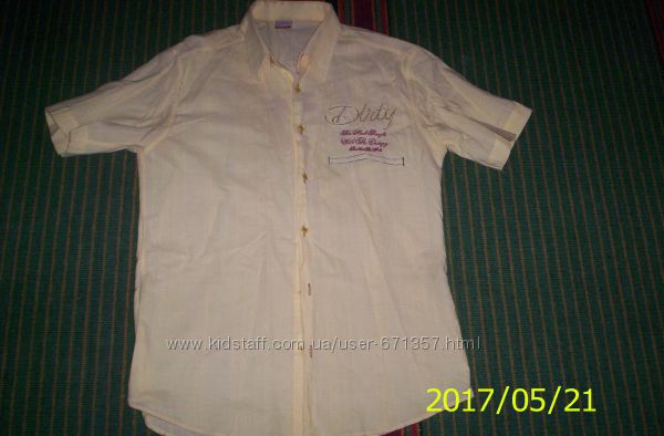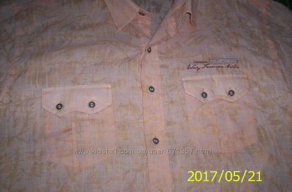 рубашки в состоянии новых, материал 100% cotton, не жаркий, легкий. Фото 1-4: размер 48-50 (XL), цвет насыщенно персиковый (фото цвет не передало). Фото 5-9: размер 46-48 (L), цвет ярко желтый. Обмена и возврата нет. Цена указана за одну.