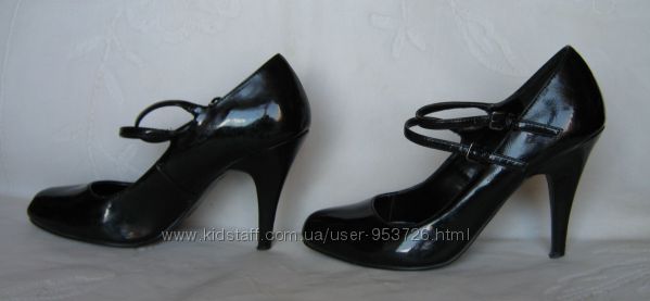 Туфли New Look черные лаковые р.38, (размер 5), классическая модель «лодочка», на каблуке. Застежка - два ремешка.Туфли в отличном состоянии, набойки целые. На узкую ногу