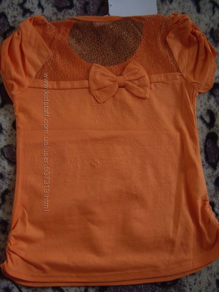 Футболка оранжевая с бабочками. Указан размер 5. ПОГ - 31см, длина - 45 см Китай. Цена 45 гривен.