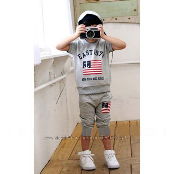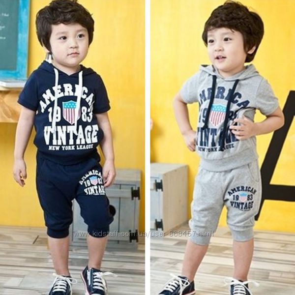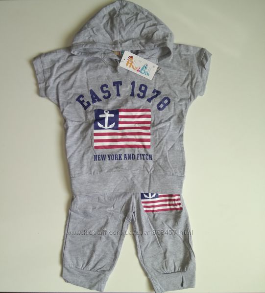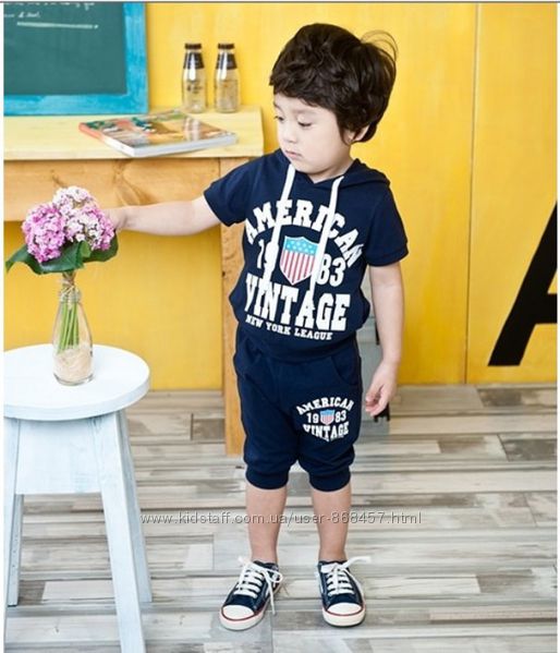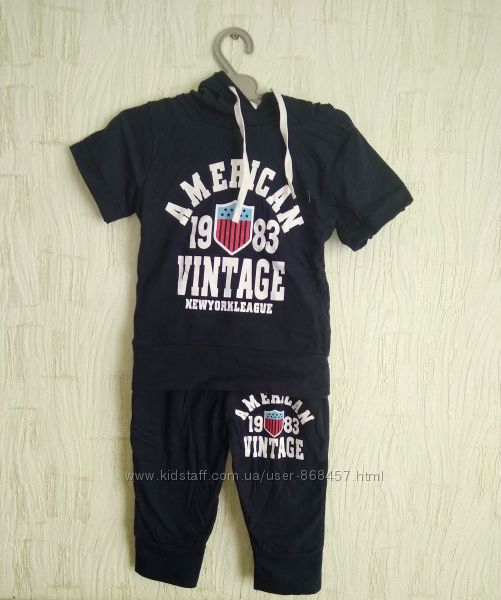 Летний комплект для мальчика Красивый, интересный, костюм. С капюшоном. На шортиках есть карманы. Шортики можно носить сначала как штанишки, а по мере роста ребенк Хорошее качество. интересный дизайн. материал 100% коттон. Размер 90,110,120,130смЗамеры : ФОТО 1-5