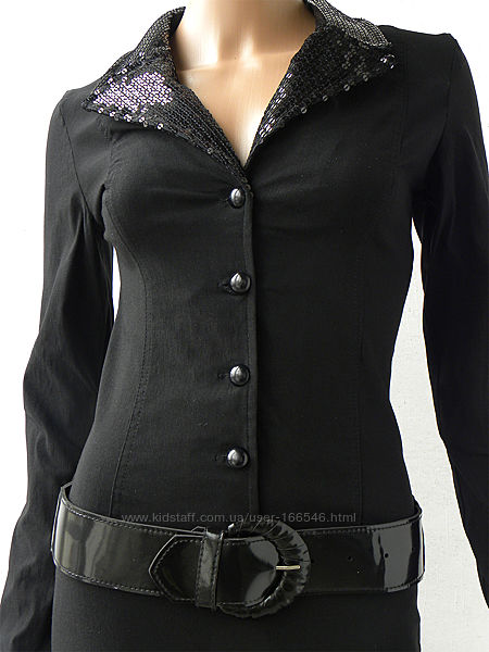 Гарне, оригінальне плаття, прикрашене паєтками. Тканина високої якості, приємна на дотик, пружна, гарно тягнеться. Охайно пошите, вдала продумана модель. Комірець відкладний. Прекрасно лягає на фігуру. Прикрашене паєтками.Склад: 75% віскоза, 20% нейлон, 5% еластан.