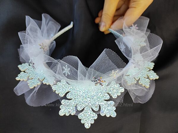Очень красивый обруч снежинка, снежная королева. С одной снежинкой 95 грн. Снежинка Перламутр на фатине снежинки галограма, очень красиво переливается)). Обруч 5 шт снежинок нежно голубой и белый. Снежинки из экокожи, на фатине снежинки галограма, шикарный и нежный. 165 грн. Количество ограничено).