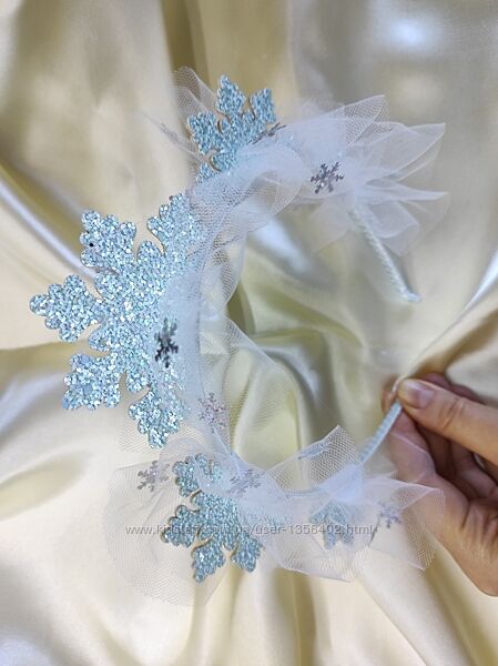 Обруч снежинка, ободок снежинка, обруч снежная королева, зимний обруч