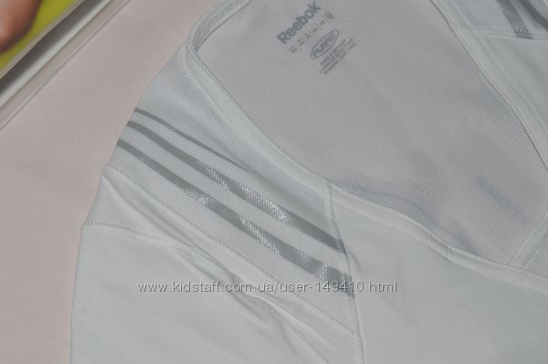 Фирменная майка Reebok Easytone, белого цвета. Плотно облегает фигуру, формирует правильную осанку за счёт уплотнения ткани на спине и плечах. Идеальный выбор для занятий спортом и для повседневной жизни.