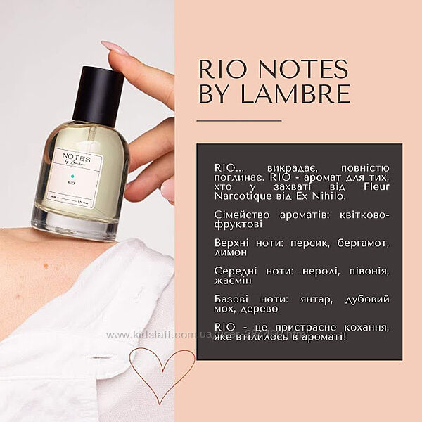ПЕРЕВАГИ· Стійкість. Аромати Notes - це парфум, що містить 20% ароматичних речовин. Зберігає їхню стійкість до 6 годин.