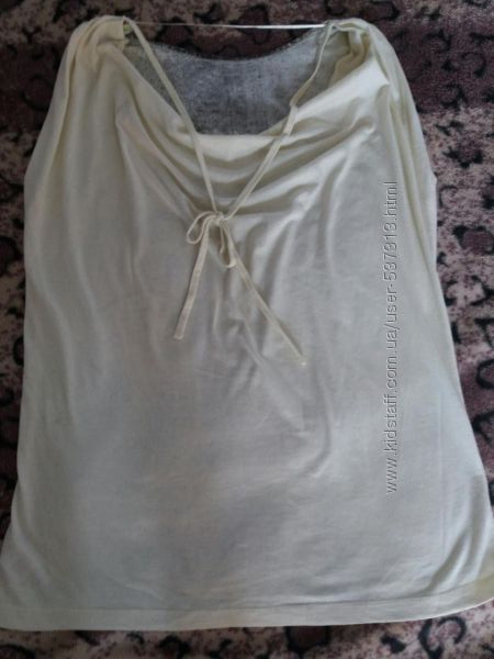 Продам красивую майку бренд DENIM CO, указан 12 размер/40, наш 46/48. Нежно лимонный цвет с черно-серым принтом. ПОГ - 52см, ПОТ - 48см, ПОБ - 52см. Длина от плеча 67см, от горловины - 60см.Красиво смотрится, на спинке чуть приспущена горловина, украшают завязочки. Цена 40гривен. Возврат не предусмотрен.Майка Atmosphere 16/44. Tкань металлик с переливом, ластиковая. Хорошо тянется. ПОГ - 40 см, длина - 69см - 25 гривен.