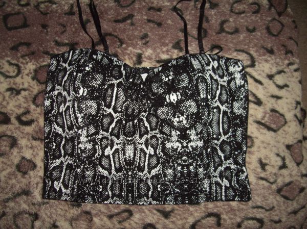 Топ QUIZ, размер 10/38, с регулирюющимися шлейками и чашечками. Мягкий и приятный велюр. Англия. 96% полиестер, 5% эластан. длина 39см, шлейка регулируется, 25см без шлейки, просто по ткани. ПОГ - 38см тянется отлично. Идеальное состояние. Цена 100 гривен. Дополнительные фото в галерее.