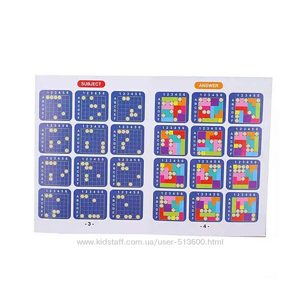 Суть игры: разместить детали Тетриса согласно заданиям в книжечке.