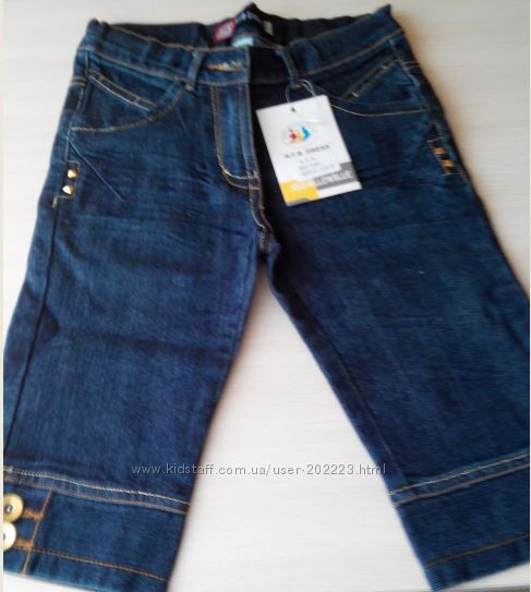Бриджи/капри пошиты очень аккуратно, джинс в меру плотный, стойкий в носке. Декорированы пуговками и по-модному смятый джинс возле кармашек и коленок сзади.