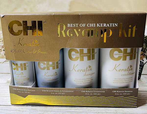 Подробное описание: США Набор CHI Keratin шампунь, кондиионер, спрей и шелк