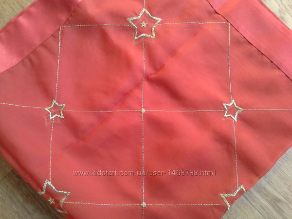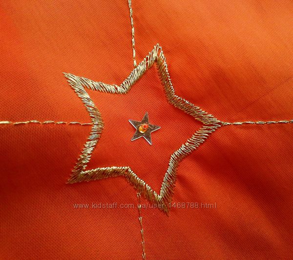 Красивый алый цвет с вышитыми золотыми нитками звездами. Внутри большей звезды пришита маленькая звезда с бусинкой.