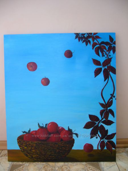Поклонникам книг В. Зеланда - авторская картина "Когда яблоки падают в небо",холст на подрамнике, масло, размер 60*70 см