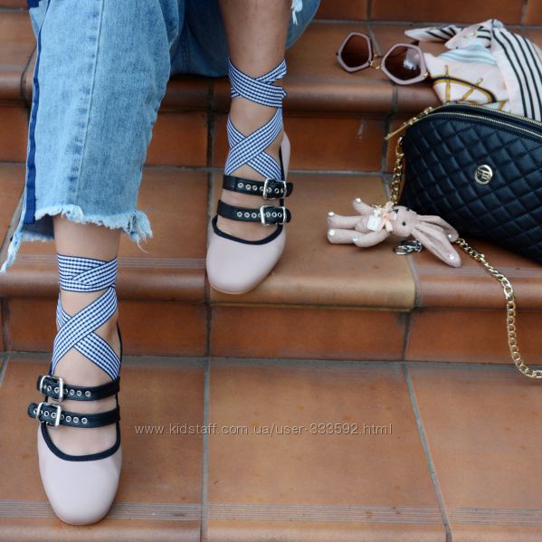 Эти кожаные балетки цвета пралине отделаны брутальными черными ремнями и лентами, которые оборачиваются вокруг лодыжки . Носить их не обязательно с пачкой, они составят прекрасный ансамбль с укороченными джинсами или легкими платьями. Чем проще одежда, тем страннее обувь. В кроксах и биркенштоках мы уже ходили прошлым летом, прочувствовали все прелести сапог Hunter, пришло время наконец почувствовать себя утонченными балеринами, главное — следить за осанкой.