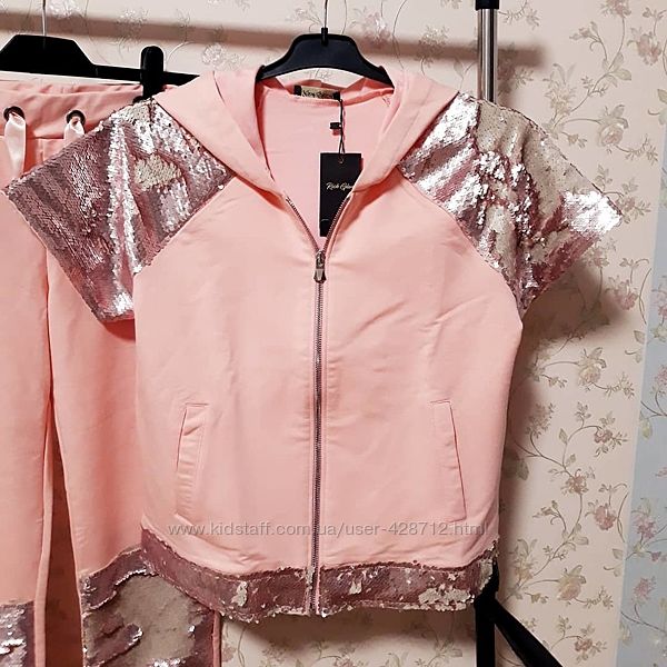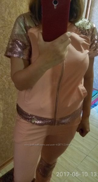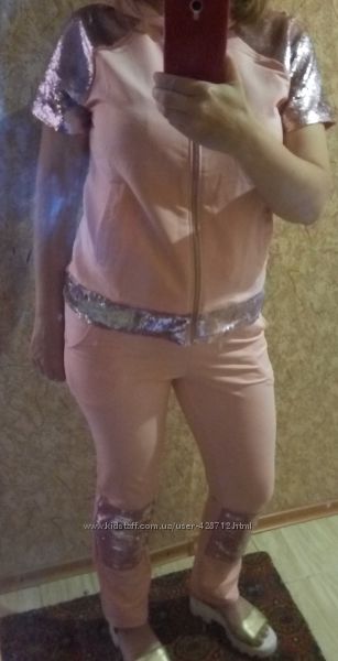 Распродажа Отличная возможность купить красивый и удобный костюм от любимого бренда по хорошей цене.брендовый женский прогулочный костюм с двухсторонними паетками Цвет пудра С М Л