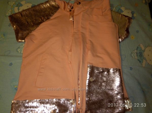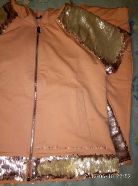 Подробное описание: брендовый женский прогулочный костюм с двухсторонними паетками