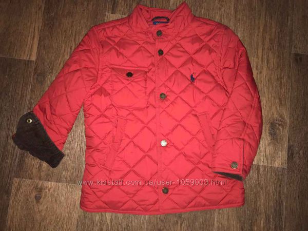 Продам:1-3)красивую стеганную куртку Ralph Lauren ( ктоненькая, на легком синтепоне), отлично носили поверх школьного костюма. р. 6 лет, плечо 9 см, длина рукава 40 см, ширина спинки 40 см, длина 48 см. Манжет можно отвернуть и будет красивый темно-коричневый вельвет. Куртка в отличном состоянии.-550 грн 4) тоненькая курточка ветровка без подкладки и утепления новая фирмы ZAKTI р.9/10 рукав реглан длина 59 см, ширина спинки 43 см, длина 54 см - 100 грн