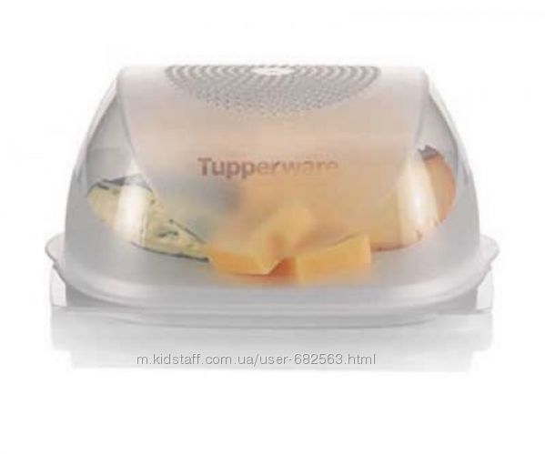 Сырница Tuppeware состоит из гранулированного сервировочного подноса и прозрачной крышки.