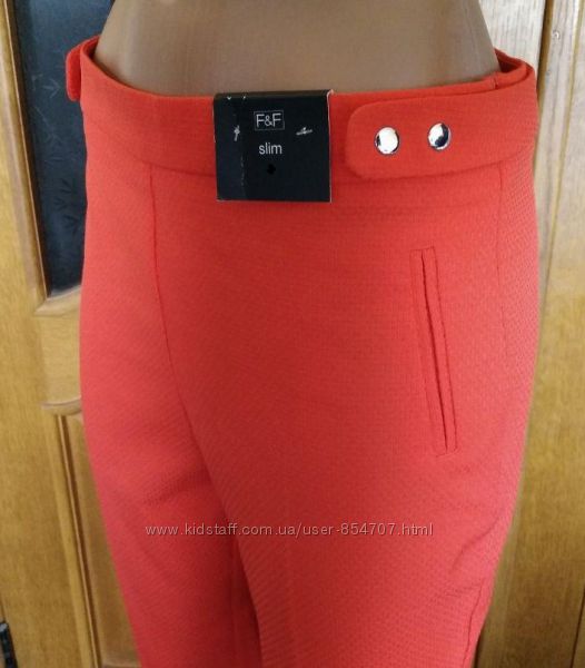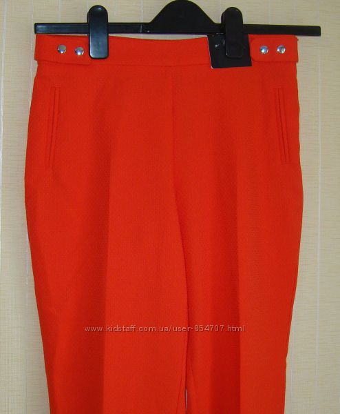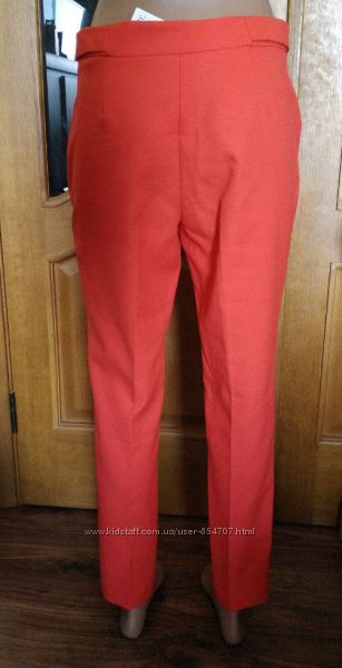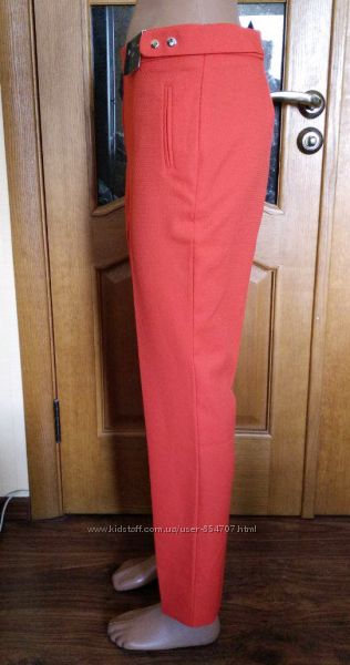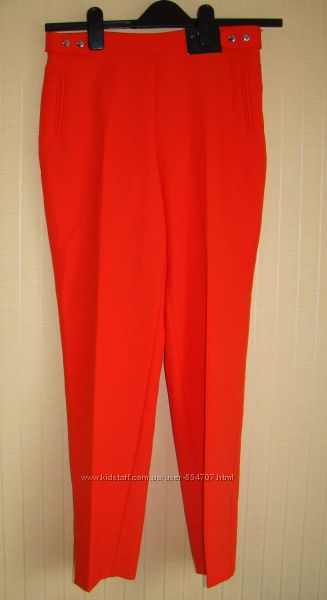 Размер 42 (S, UK 8, EU 36). Застежка потайная в боковом шве. Ширина по поясу 37 см. Ширина по бёдрам 45 см. Длина по боковому шву 96 см. Длина по внутреннему шву 73 см. Ширина штанины внизу 15,5 см. Глубина сидения спереди 26,5 см., сзади 38 см.