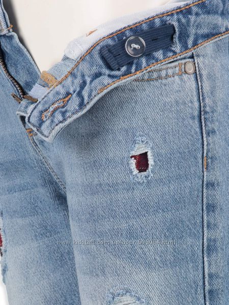 ФОТО 6-7 Стильные голубые Джинсы бойфренды с подряпанностями и встаками шотландка