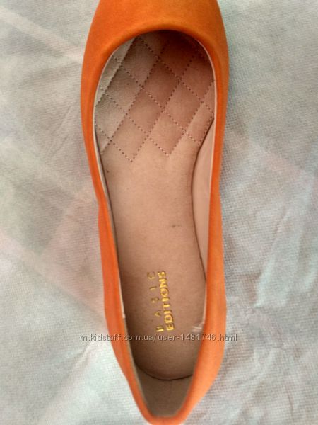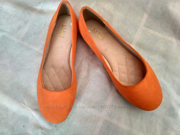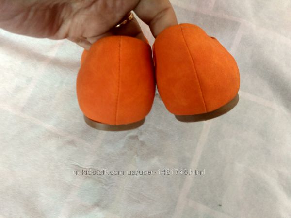 Балетки оранжевого кольору, розмір 36 ( устілка 22 см, дуже м´яка та зручна), моїй дочці не підійшов розмір. По підошві видно що не ношені.Висилаю Новою поштою 100 % оплата на картку Приватбанку