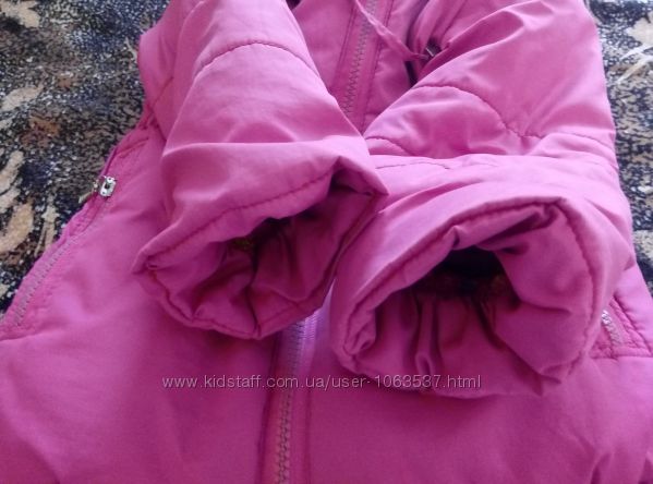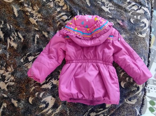 Деми курточка в очень хорошом состоянии. Подкладка флис (рукава тоже). Капюшон на молнии, на талии резиночка. Замеры: длина 46 см, ширина 35 см, длина рукава 34 см. Теплая, не промокает. Подароу теплая жилетка.Другие объявления продавца