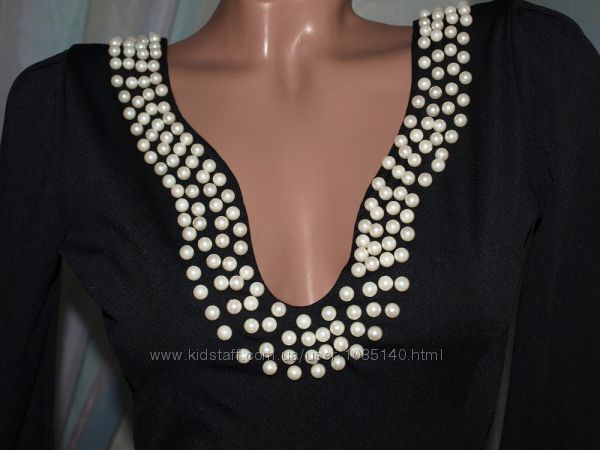 Фото 1-3 Платье-Мини или туника с жемчужными бусинами Девочки, шикарнейшее мини-платье или туника с рукавчиками 3\4, на вырезах украшенное ( и спереди и сзади ) жемчужными бусинами ( надёжно закреплёнными ), смотрится потрясающе эффектно и со вкусом! По низу юбочки кокетливая рюша.Размер 42-44, замеры: длина 80 см, ПОГ 40 см ( ОГ до 86 см, есть вытачки ), ПОТ 35 см, ПОБ 42 см ( ОБ до 90 см ), рукав сверху 55 см, снизу 40 см. Ткань - плотный дайвинг, немного тянется. Спрашивайте, пожалуйста, смотрится потрясающе красиво;-) Цена 175 грн.