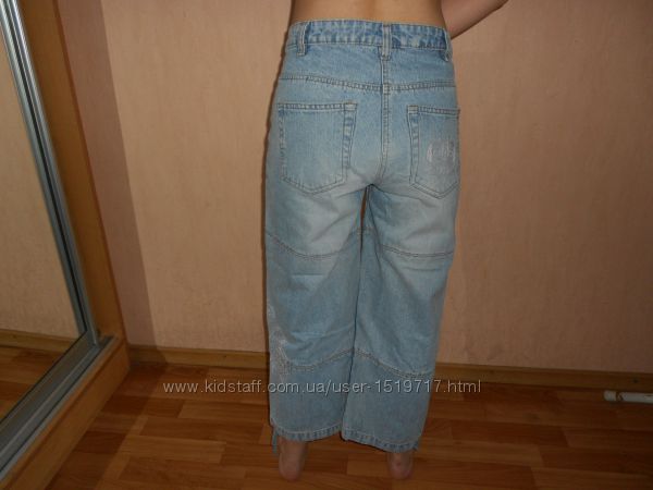 Тренд этого сезона. Укороченные широкиелетние джинсы, фр.38 размер, наш 46-48, бренд Bona Parte, новые, сток. ПОТ 38 СМ, поб 50 см, длина 83 см, шаговая длина 59 см, посадка 26/38, объем ноги сверху 60, снизу 48 (можно регулировать веревочками. 100% хлопок