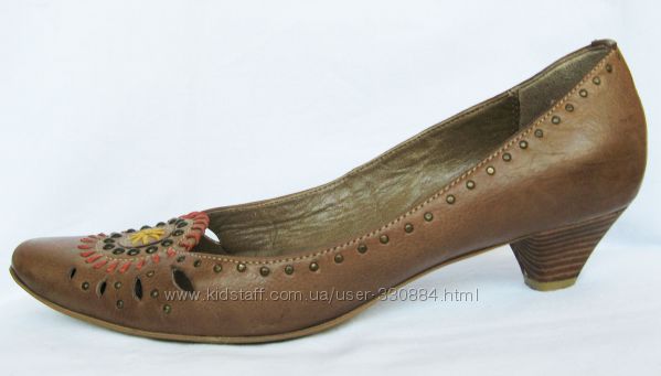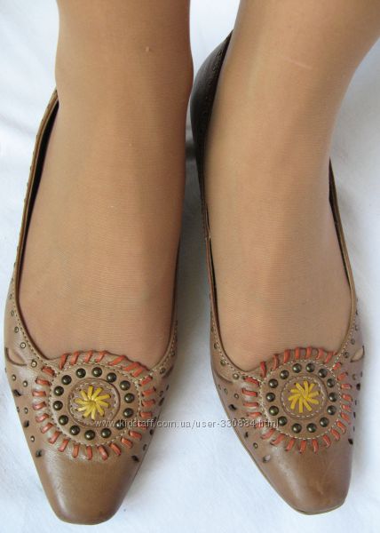 520. Очень мягкие оригинальные туфельки итальянского бренда "Varese" в очень хорошем состоянии. Стелька чистая, при снятии бумажной бирки со стельки немного снялась краскаМатериал верха - натуральная кожа песочного цвета (или темный беж), очень мягкая и эластичная. Носочек декорирован полосками-протяжками желтого и оранжевого цвета. По всей туфельке металлические заклепки (на правой одна утеряна в пяточной части)