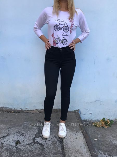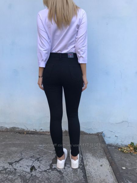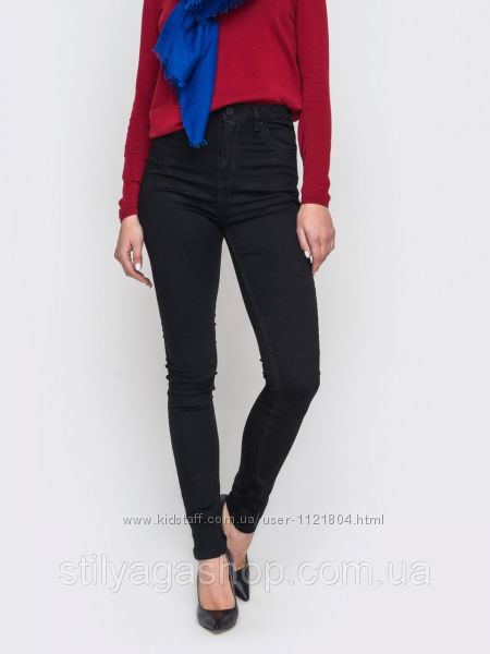 Подробное описание: Джинсы c высокой посадкой облегающие черный