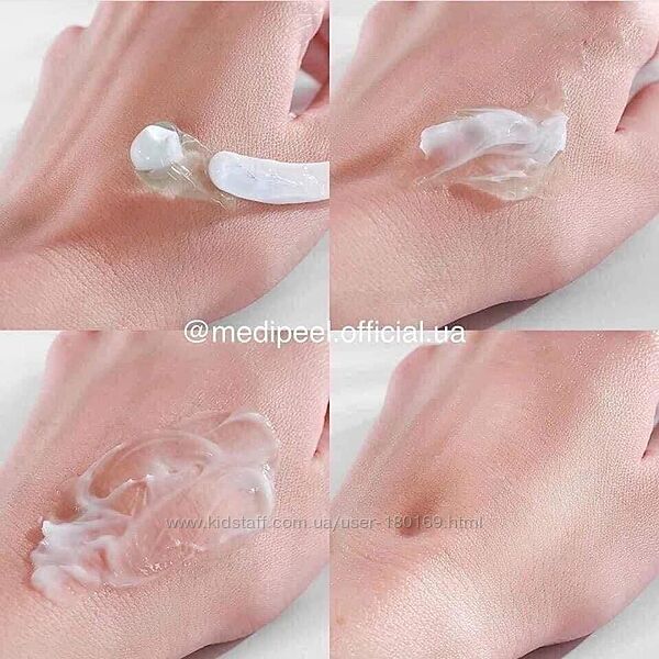 Уникальная текстура средства содержит белые кремовые вкрапления, насыщенные комплексом гиалуроновой кислоты (разной молекулярной массы), пептидами и другими мощными увлажняющими и питающими компонентами, а гелевая текстура продукта состоит из успокаивающих ингредиентов таких, как пантенол, комплекс экстрактов синих цветков и другие. При смешивании двух фаз образуется нежная, лёгкая кремовая текстура, которая быстро впитывается и не оставляет липкости после нанесения. Кожа становится увлажнённой, напитанной и приобретает красивый здоровый блеск!