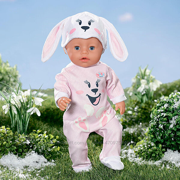 Ваша лялечка BABY BORN так схожа на милого зайчика у цьому стильному рожевому комбінезоні з малюнком кролика! Шапочка з м’якими кролячими вушками ідеально доповнять цей весняний образ. Одяг виготовлено з високоякісних матеріалів.