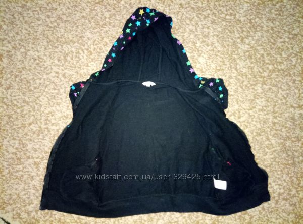 Продам классную спортивную кофточку в звезды. Застегивается на змеечку, по бокам 2 карманчика. Указан размер 12-13 лет, дочка носила при росте 140см. Если рост больше, кофточка будет до талии. Состояние отличное, без дефектов.Длина -50см Плечи- 33см ПО груди - 43см Рукав - 13см Пройма- 10см Ширина внизу- 39см Возврата нет.