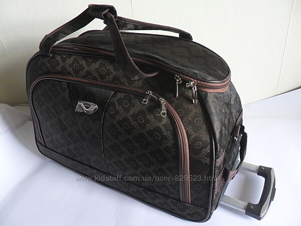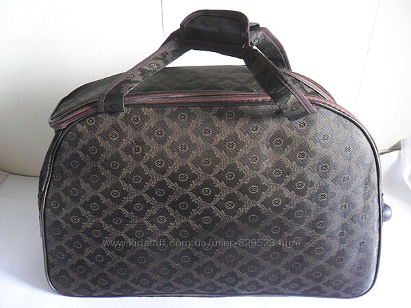 Сумки дорожные на колесах, с выдвижной ручкой . Малые (950 грн.)и средние (1350 грн.). Сверхлегкие. Для путешествий на поездах, автобусах, автомобилях. Цвет коричневый, с узором. Для женщин и мужчин. Для молодежи, для детей. Размеры сумок и цены:-- Размер 1-й: 52 (с колесами 54 см.) х 32 х 30 см. Внешний объем 50 литров. Вес 1,5 кг. Высота с полностью выдвинутой ручкой 90 см. Цена 950 грн.