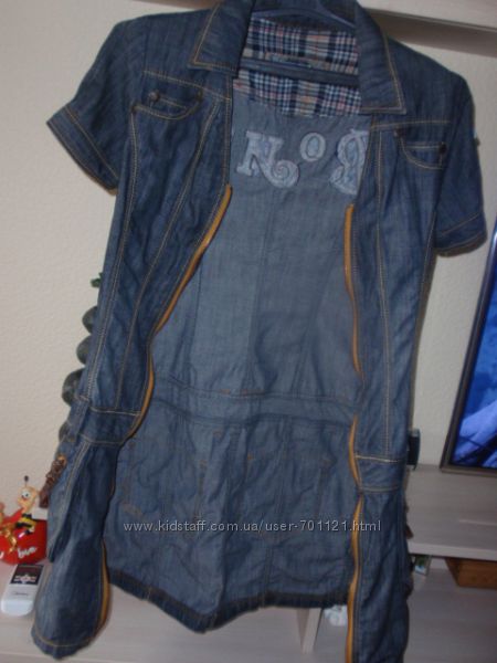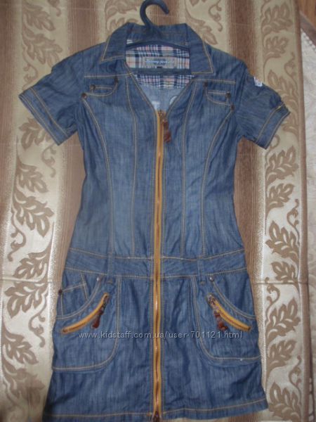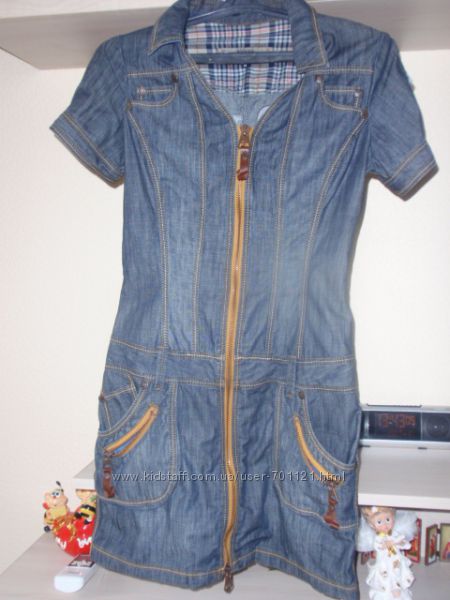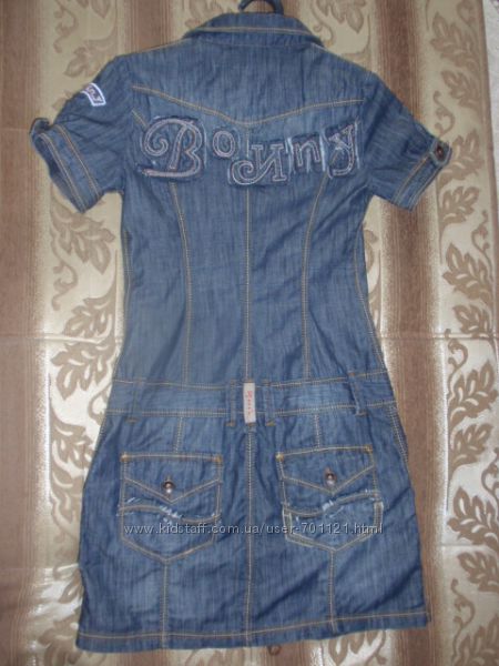 Очень красивое и стильное молодёжное джинсовое платье BONNY JEANS ,в идеальном состоянии (cостояние нового).Фабричная Турция,100 % котон,на бирке размер М..Качество отличное.Замеры:общая длина 87 см,длина по спинке до талии(пояса) 51 см,ширина по плечам 36 см,ширина под рукавами 43 см,талия 34 см,ширина по низу 51 см. Котон очень мягкий,но плотный.Очень красиво сделаны рукава.Талия занижена.Много карманов.Посредине застёгивается на молнию,которая функционирует и снизу,и сверху.Останетесь покупкой очень довольны.Другие объявления продавца