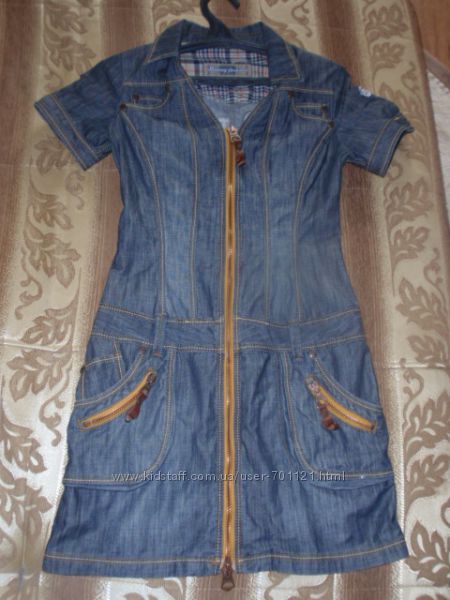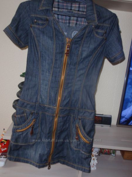 Очень красивое и стильное молодёжное джинсовое платье BONNY JEANS ,в идеальном состоянии (cостояние нового).Фабричная Турция,100 % котон,на бирке размер М..Качество отличное.Замеры:общая длина 87 см,длина по спинке до талии(пояса) 51 см,ширина по плечам 36 см,ширина под рукавами 43 см,талия 34 см,ширина по низу 51 см. Котон очень мягкий,но плотный.Очень красиво сделаны рукава.Талия занижена.Много карманов.Посредине застёгивается на молнию,которая функционирует и снизу,и сверху.Останетесь покупкой очень довольныПохожие объявления