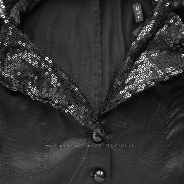 Вишукане чорне плаття прикрашене паєтками. Довгий рукав, продуманий фасон - відмінно сидить на фігурі, гарно її підкрелюючи. Тканина плотна, гладенька, дуже приємна на дотик, не тягнеться. Має цікавий прояс.Склад: 75% віскоза, 20% нейлон 5% еластан