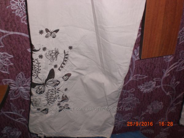 Брюки женские бежевые с вышивкой новые (не подошел размер) Размер 44-46Длина 102 см (по внутреннему шву 81 см)