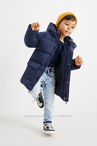 Зимові куртки для хлопчика. Куртка має щільний шар наповнювача. Капюшон на куртці вшитий, має наповнювач і хутряну підкладку, за рахунок якої капюшон може замінити шапку. У рукавах еластичні манжети, які щільно прилягають до руки і не дають потрапити холодному повітрю всередину. Застібається куртка на блискавку аж догори, закриваючи шию дитини від холодного вітру. Куртка підходить на холодну зиму.Брендовий магазин C&A Німеччина