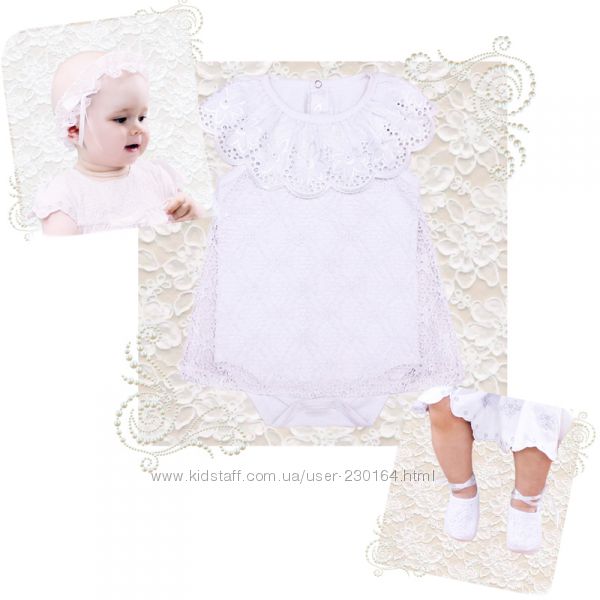 Наряды для крещения ваших малышек из 100% хлопка:Платье-боди (можно укомплектовать пинетками и головным убором по желанию). Цена - 170 грн