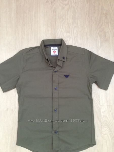 Біла із кольоровим принтом - на 8 років Синя рубашка -на 9 років