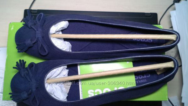 Балетки Crocs , оригинал из США, в фирменной коробке. Выполнены из натуральной высококачественной замши, комфортная стелька с массажным эффектом, гибкая подошва с протекторомЦвет - синий