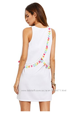 Нове літнє біле плаття ROMWE Америка (Амазон), розмір М . Без етикетки, в оригінальній упаковці, таке приїхало. Склад: 95% Polyster, 5% Spandex. Тканина не просвічується. Якість хороша.Заміри: довжина по брительці - 88 см; ширина під пахвами - 48 см; ширина з самого низу - 60 см.Pull On closure