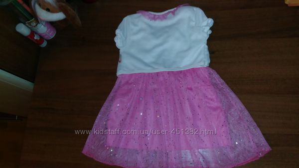 новый нарядный костюм девочке 3-6 месяцев состоит из сарафана и болеро. Без бирки. Нам подарили, но мы не успели поносить. На сарафане впереди разноцветными стразами выбита бабочка с цветочками. Над подъюбником фатин, на котором рассыпаны переливающиеся блесточки. Только при осмотре заметила, что на подъюбнике есть зацепочка (за фатином ее не видно). Замеры: длина платья по спинке 40 см, ширина талии и под мышками 23 см. Ткань тянется. Отправлю Новой или укрпочтой за Ваш счет. Товар обмену и возврату не подлежитДругие объявления продавца