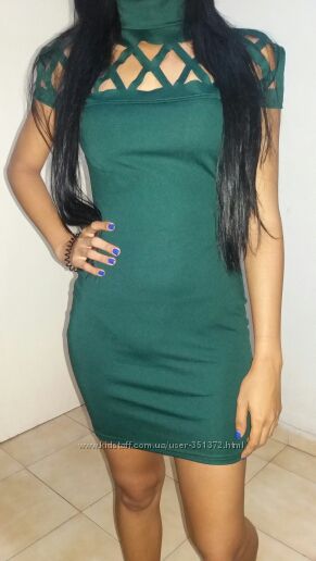 Платье выполнено из гладкой плотной ткани... слегка тянется... оригинальный фасон... короткий рукав... длина мини... маленькое цветное платье в готическом стиле... воротник стойка... плечи полуоткрыты за счет необычного клетчатого выреза... в наличии зеленое М (не маломерит, на размере S будет не в обтяжку)Замеры по ткани: