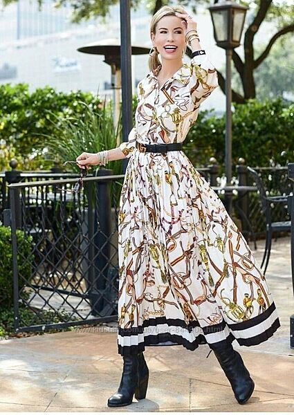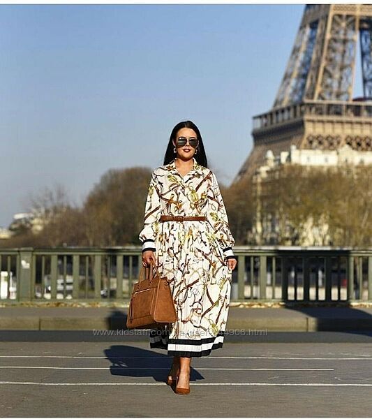 Платье H&M до икры из атласа с рисунком и воротником, пуговичная планка, длинные рукава с манжетами на пуговицах, отрезное по талии сплиссированной юбкой. Без подкладки.аутлет без бумажной бирки