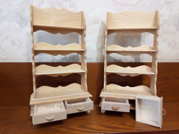 Подробное описание: Кукольная мебель для Барби - стеллаж с ящиками