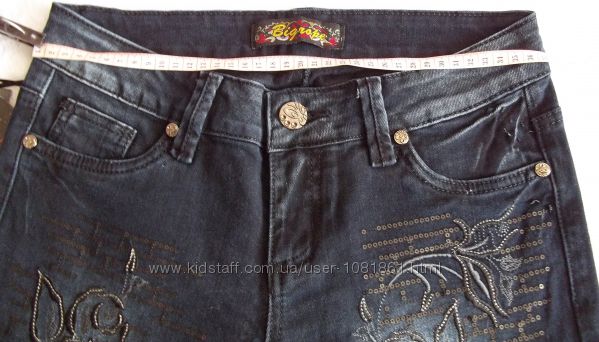 Штани джинсові з вишивкою та пайєтками. Колір - темно-синій. Розмір 27, нові. Тканина щільна, стрейч. Крій прямий.Заміри:- півобхват в поясі - 37 см,- довжина по внутрішньому шву - 84 см,- довжина по боковому шву - 105 см,- півобхват штанини: внизу - 16 см, в області колін - 17 см.Доставка Новою поштою, Укрпоштою за рахунок Покупця.Похожие объявления